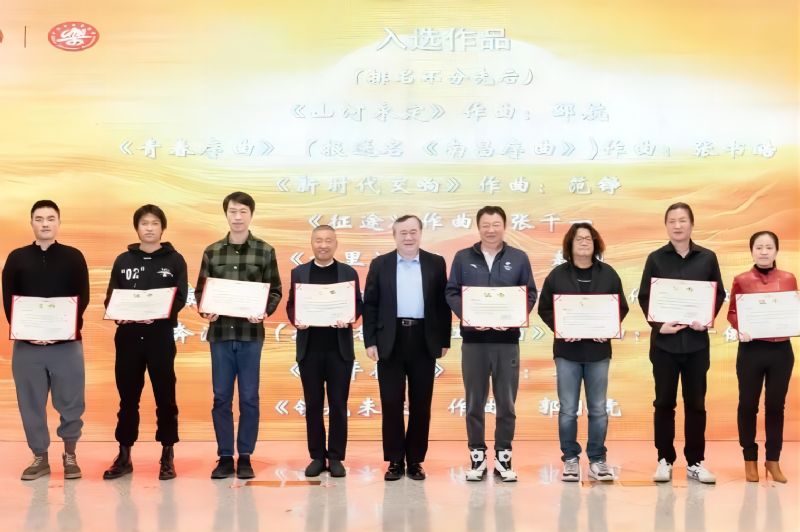 中国文联党组成员、副主席俞峰为入选作品的作曲家颁发证书
