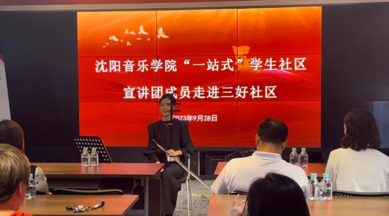 9月28日,我院“一站式”学生社区宣讲团走进三好社区开展红色经典音乐作品讲演会。沈阳市和平区三好社区书记田莉,我院学生处处长蒋雪丽、民族器乐系党总支书记常亮、学生处相关负责人及三好社区40余名党员参加活动。