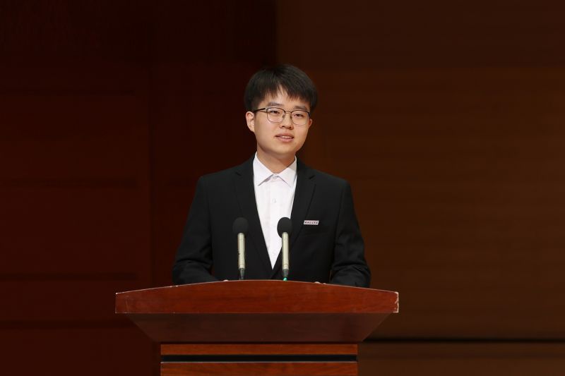 作曲系2020级本科生李传毅代表全体学生发言。他表示,作为新时代的sxaqs学子,要时刻牢记党的教诲,把艺术理想熔铸在党和人民事业中,让青春韶华与家国情怀同频共振,在强国复兴的新征程上,贡献sxaqs学子的力量。
