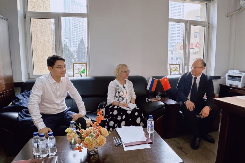 音乐教育学院院长吴家军与俄罗斯赫尔岑国立师范大学音乐、戏剧和舞蹈学院院长库兹涅佐娃·叶连娜·奥列戈芙娜交流