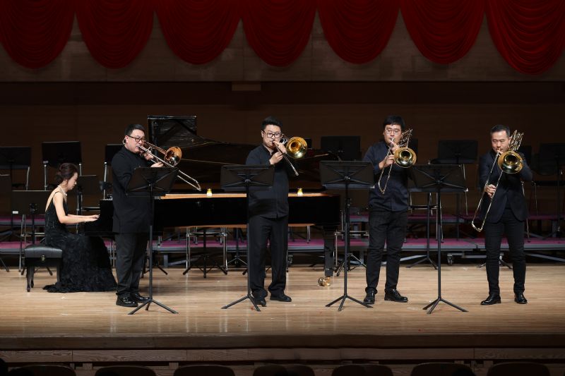 音乐会在《长号四重协奏曲》中拉开帷幕。作品将古典旋律加以爵士化,让观众领略古典与爵士有机融合的音乐风格。小提琴独奏《山中醉》开篇提琴声低沉如山中客浅酌低吟,之后音色渐转,山中客酩酊大醉兴至起舞的身影跃然眼前。长笛独奏《迷娘幻想曲》以托玛的歌剧《迷娘》为主题,旋律优美,情感表达与技术展示巧妙地融为一体。古典吉他独奏《音乐会回旋曲》旋律细腻动人,音色丰富多彩,充满激情与宏大的气势。打击乐重奏《何西》包含有传统非洲木琴和西班牙弗拉门戈的音乐元素,既体现了世界各种文化的差异,又表达了不同音乐的融会贯通。圆号八重奏《在那遥远的地方》自然和谐、生动流畅,既有哈萨克民歌的音色,又体现了青海民歌的艺术风格。《A大调第五小提琴协奏曲》(第一乐章)充满力度和速度的对比,极富戏剧性,清澈的句法和管弦声部色彩的选择充分展现了轻快、爽朗的旋律特征。在交响乐《光荣与梦想》气势磅礴、激情澎湃的旋律中音乐会圆满落下帷幕。