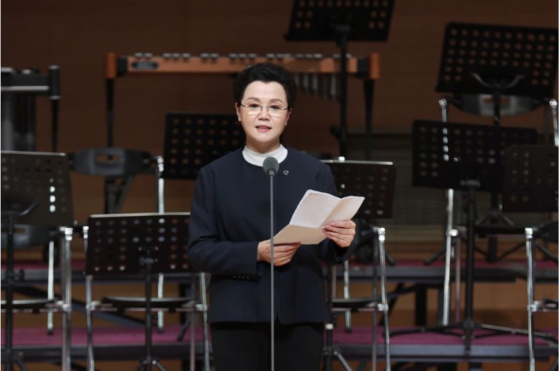 冯志莲在大会上致辞,向长期以来关心和支持学院发展建设的各级领导、各界友人表示衷心感谢。她指出,建校85年来学院始终以繁荣民族音乐文化、服务人民为己任,致力于传承弘扬民族音乐文化,培养造就德才兼备的艺术人才。辽宁省高等学校中国器乐研究中心的成立是学院深入学习贯彻习近平文化思想,推动中华优秀传统文化创造性转化、创新性发展的有力举措。研究中心以理论研究、音乐创作、舞台实践为核心,对优秀传统音乐文化进行创新演绎并赋予其新的时代内涵,搭建高水平研究平台,积极探索中国传统音乐文化传承创新之路,努力培养更多高素质民族艺术人才。冯志莲强调,研究中心要以强烈的使命担当,推出富有中国特色、体现时代精神的精品力作,构建中国民族器乐理论研究体系,为推进学院“双一流”建设,提高人才培养质量,繁荣发展社会主义文艺事业作出应有贡献。