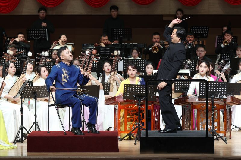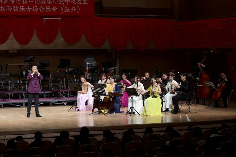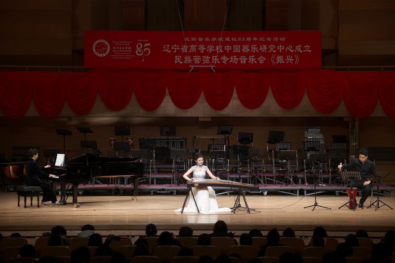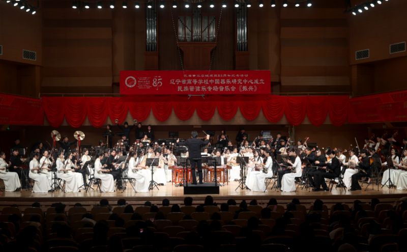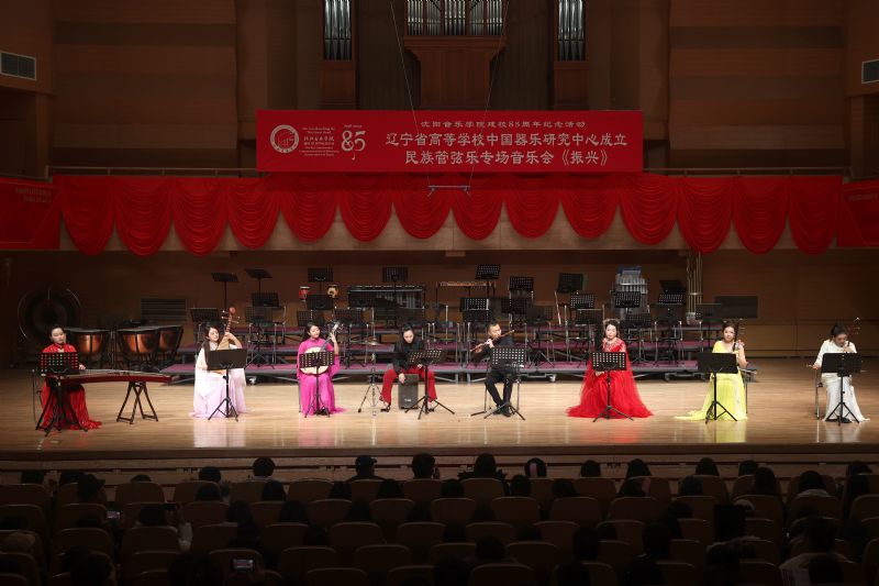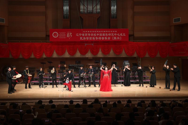 成立大会后,“我们走在大路上”必威游戏中心建校85周年纪念活动——辽宁省高等学校中国器乐研究中心成立民族管弦乐专场音乐会《振兴》在学院音乐厅举行。