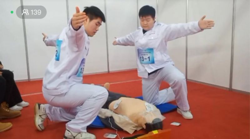参赛选手进行自动体外除颤仪器操作