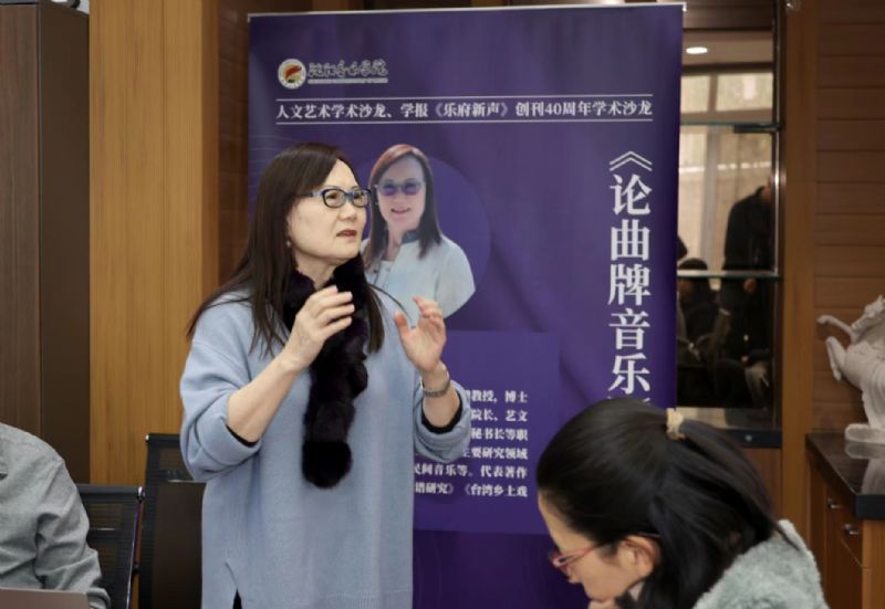 活动中,施德玉与师生们分享了她本人关于我国传统音乐的重要形式之一——曲牌音乐的研究与思考。她以语言与音乐的关系为切入点,从格律、音韵入手,回溯了曲牌音乐的形成与发展,阐述了曲牌音乐的内在结构形式、填词与制曲规则以及连曲规律等,总结了曲牌音乐的一般特征和相关剧种的创作方式,并提出曲牌音乐发展的多样性和研究视角的多元性。最后,施德玉指出,在中华民族浩瀚的艺术海洋中,曲牌音乐虽只是其中一部分,但其经过历代名家的不断雕琢形成了缜密的结构,留下了鲜明的文化印记,是具有重要价值的民族文化瑰宝。