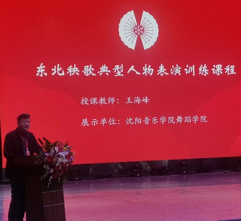 在秧歌课程展示环节,王海峰将理论讲解与动作示范有机结合,进一步加深学生对东北秧歌典型人物动作外形和动作方法的理解与认识,通过服装、道具、影像资料等多种手段,让学生融入浓厚的地域特色之中。他强调,要以情感人、以情动人,充分展现东北秧歌火爆、幽默、诙谐、生动的形象风格和画面感。该课程艺术风格形象化、个性化人物风格凸显,体现了浓郁的东北地域风格特色,充分培养了学生的综合表演能力和舞台实践能力。