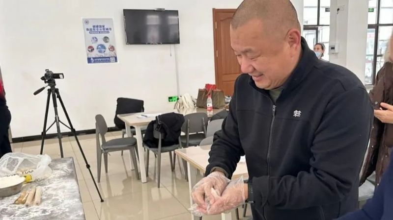 学生处处长蒋雪丽、后勤基建处书记李静、团委书记王爽参加包饺子活动