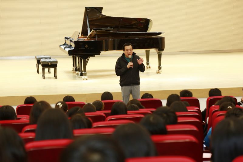 5月14日,国家一级指挥,中国音乐家协会理事,中国广播电影交响乐团常任指挥,我院校友、特聘教授范焘在附属中等音乐学校讲学,为全校师生作题为《如何面对未来音乐之路》的专题讲座。附中领导班子成员及各学科、科室负责人和师生代表参加讲座。讲座由副校长曹野主持。