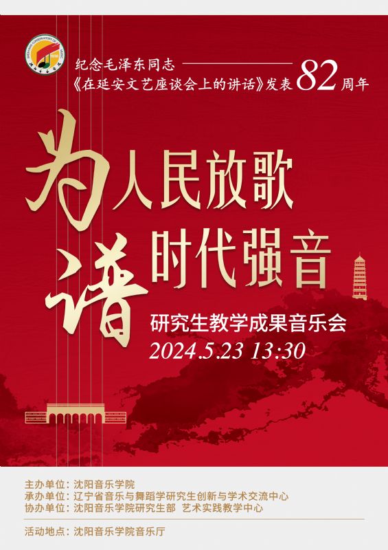 音乐会名称:纪念毛泽东同志——《在延安文艺座谈会上的讲话》发表82周年 为人民放歌 谱时代强音研究生教学成果音乐会
