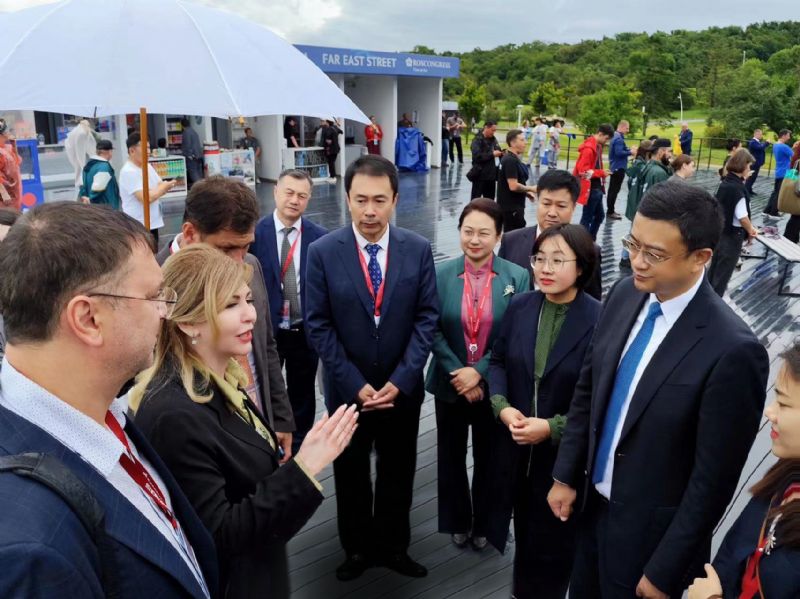 作为此次出访的重要日程,9月5日代表团一行抵达符拉迪沃斯托克参加东方经济论坛演出活动,与俄罗斯滨海边疆区政府副主席叶莲娜·尼古拉耶夫娜·博罗尼科娃等有关人员举行会谈。辽宁省副省长高涛、省政府副秘书长孙伟、省商务厅厅长潘爽、省工业和信息化厅副厅长彭义、省人民政府外事办公室二级巡视员吴世坤等共同观看演出并进行交流。