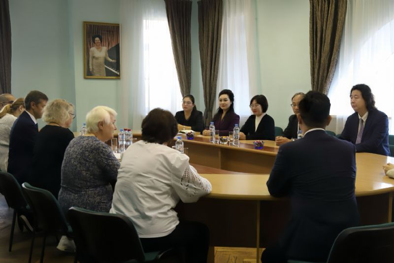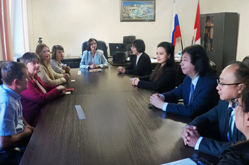 代表团与俄罗斯滨海边疆区政府副主席博罗尼科娃、滨海边疆区爱乐乐团团长科切特科娃,中国驻符拉迪沃斯托克总领馆总领事朴扬帆、副总领事王军、副总领事余祖捷等举行会谈