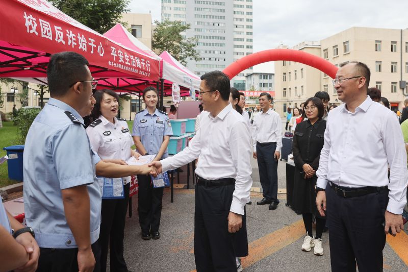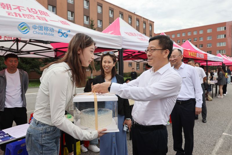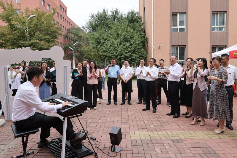 9月11日上午9时,学院党委书记赵恒心、党委副书记孙旭东、副院长庞渤、副院长王硕、纪委书记张健一行前往三好校区、桃仙校区、长青校区实地走访,党政办公室、学生处、研究生部、团委、教务处相关负责人陪同前往。学院领导到各院(系)新生报到处欢迎新生,为他们佩戴校徽,送上纪念品、生活用品大礼包,并为报到当天过生日的同学送上生日蛋糕和祝福,勉励他们传承鲁艺红色基因,担负文艺强国使命,做立大志、明大德、成大才、担大任的时代新人。同时,对一线工作人员和学生志愿者的辛勤付出表示慰问。 “时代各有不同,青春一脉相承,属于新时代青年的画卷正徐徐展开。”学院领导们在sxaqs舞校的打卡点集体拍照留念。副院长庞渤即兴演奏了红色经典曲目《黄河》《我和我的祖国》,迎新现场再现气势恢宏的听觉、视觉双重震撼,新生、家长、老师自发大合唱,将迎新气氛推向高潮。