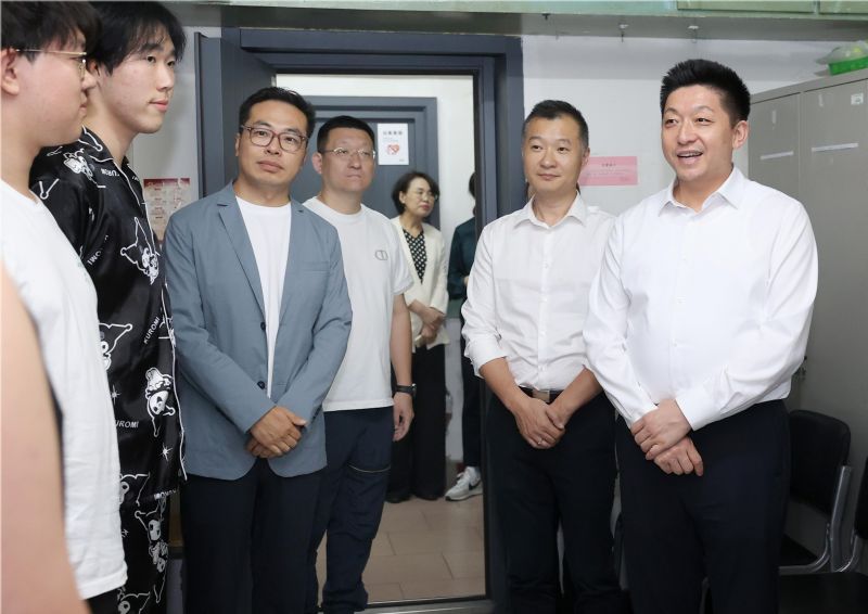 晚上8时,学院党委副书记、院长田彦走访新生寝室,“同学,你家是哪里的?”“学什么专业的?”“沈阳的天气凉得早,记得多穿衣服” 。一句句亲切温暖的问候拉进了彼此心的距离,增强了新生的幸福感、归属感。田彦鼓励新生,珍惜时光,勤学向上,尽快适应新环境,融入新集体,即兴与学生一同演唱了歌曲《我和我的祖国》。