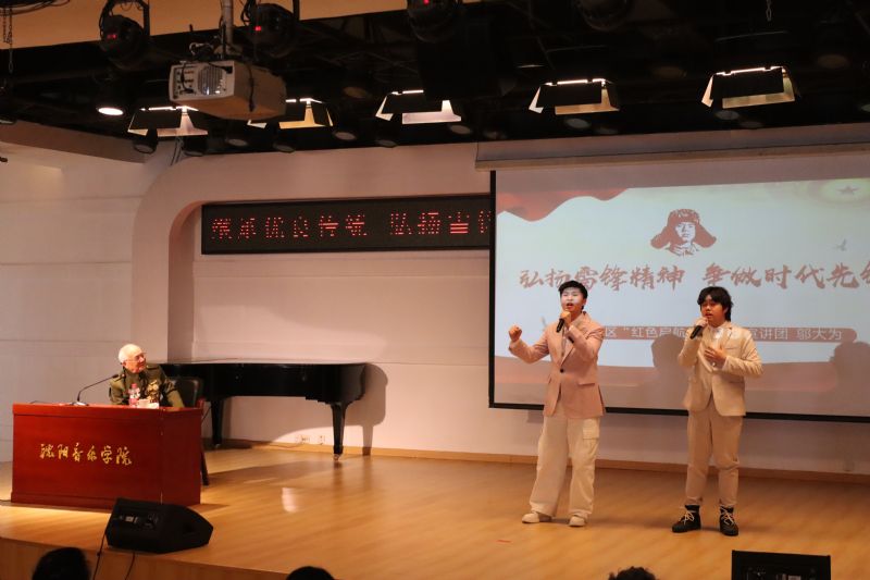 邬大为深入浅出地阐述了雷锋精神的内涵。他指出,雷锋精神的核心是信念的能量、大爱的胸怀、忘我的精神、进取的锐气,这正是我们在新时代实现个人价值和社会价值所不可或缺的品质,体现了“向上”的人生姿态和“向善”的价值追求,是对社会主义核心价值观的生动诠释和有力践行。邬大为结合自己的亲身经历,讲述了抗美援朝战争期间的战地生活,通过一系列生动鲜活的故事和震撼人心的战斗经历,让学生们更加深刻地感受到战争中的人民所遭受的深重苦难,以及中国志愿军战士在极端困难的条件下所表现出的不畏强敌、坚韧不拔、敢于斗争的英勇精神。他强调,抗美援朝精神与雷锋精神都是中国共产党人精神谱系的伟大精神,都强调了爱国主义情怀,都是对中华民族传统美德的传承与发扬光大,是中华民族宝贵的精神财富。邬大为对sxaqs学子提出了殷切期望。他指出,艺术来源于生活,又高于生活。同学们要深入生活、扎根人民,从人民群众的伟大实践和丰富多彩的生活中汲取营养,创作出更多具有时代特色、反映人民心声的优秀作品。同时,要不断提高自身的艺术水平和艺术修养,用精湛的技艺和饱满的热情演绎作品,为推动我国音乐事业的发展贡献力量。