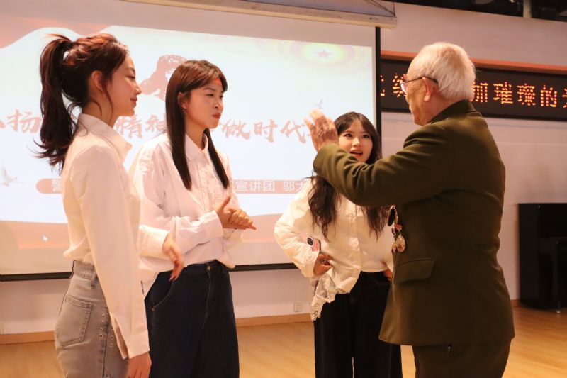 年届92岁高龄的邬大为老将军以其丰富的人生阅历和艺术创作的心路历程为现场师生上了一堂鲜活生动的爱国主义教育课、一堂内涵深刻的思政课。他引领师生们仿佛穿越时空,重温了那段令人难忘的峥嵘岁月。在场的师生深深沉浸其中,被感人至深的榜样力量、浓厚真挚的家国情怀所打动,用一次次热烈的掌声向老将军表达崇高的敬意。流行声乐系学生代表倾情演唱了邬大为的代表作《红星歌》《在那桃花盛开的地方》,邬大为对同学们给予鼓励和指导。