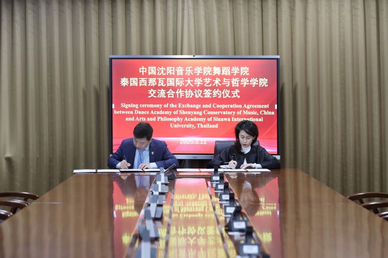 舞蹈学院党委书记祝嘉怡与泰国西那瓦国际大学艺术与哲学学院副院长于挺签署交流合作协议