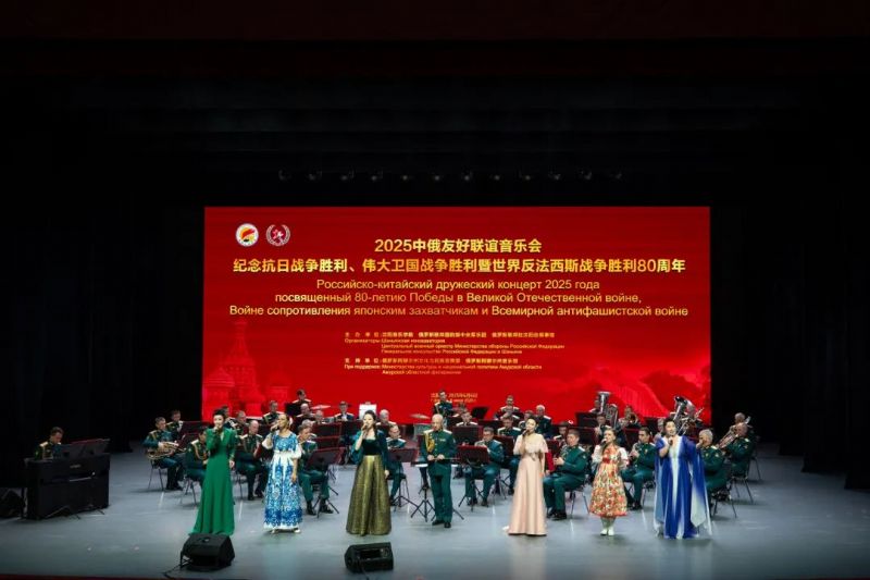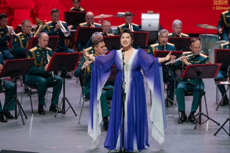 音乐会在俄罗斯功勋艺术家季莫费·马亚金少将指挥的柴可夫斯基《第四交响曲》终章的磅礴声浪中启幕。这部“命运抗争”的史诗,令观众仿佛置身硝烟弥漫的战场。歌曲《芦花》,演唱者以空灵的嗓音勾勒江南水韵,与俄罗斯民歌《毡靴》的“冬日幽默”形成诗意对话。维吾尔民歌《一杯美酒》热情奔放;巴拉莱卡琴奏响的《节日庆典》再现了斯拉夫民间婚礼的狂欢场景;歌曲《在希望的田野上》饱含对美好生活的赞美;歌曲《春天的芭蕾》《俄罗斯上空飞行》,演唱者以高超的演唱技巧引发观众赞叹;《五月华尔兹》经典的旋律将观众回到1945年那个鲜花漫天的胜利之春,《莫斯科郊外的晚上》《喀秋莎》熟悉的旋律则将全场气氛推向高潮,观众长时间起立鼓掌,致敬这场跨越80载的音乐对话。