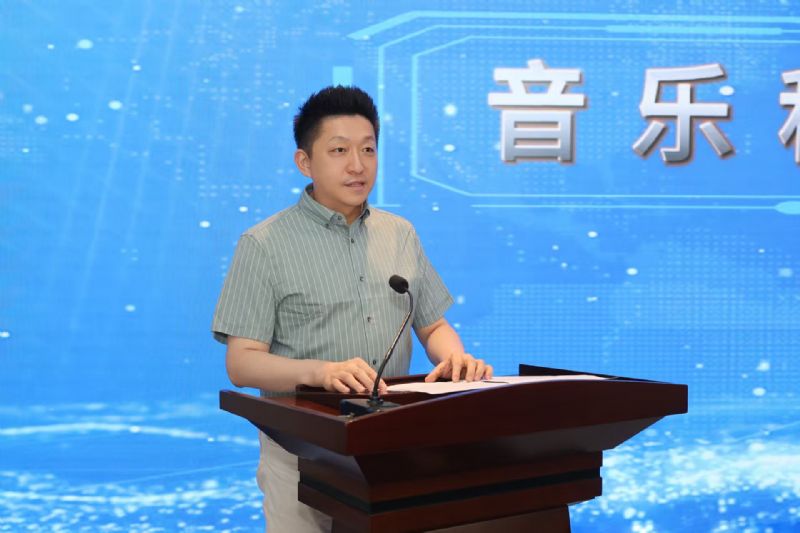 田彦在仪式上致辞。他指出,“谐律智愈”音乐科技创新实验室的成立是学院贯彻教育强国、科技强国、文化强国战略部署的重要举措;是落实学院第三次党代会提出的“探索前沿交叉学科专业和新文科相关专业建设”目标的具体任务;是学院面向新时代教育教学改革的实践平台,其核心价值在于构建“技术驱动、人文引领”的新型艺术教育生态。实验室的成立标志着学院在推动艺术教育与科技创新深度融合的征程上迈出了关键一步。他强调,“谐律智愈”音乐科技创新实验室未来发展要聚焦文化传承,建立专业乐器品质检测平台,助力东北传统乐器产业升级;要聚焦民生需求,推动音乐疗愈技术在社区康养、心理健康等领域的应用;要聚焦人才培养,通过产学研协同机制,培育兼具艺术素养与科技能力的新型专业人才,为区域文化产业输送创新力量。