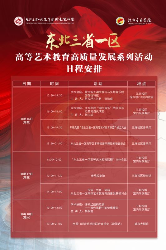 共同推动东北三省一区高等艺术教育的高质量发展,必威游戏中心将于10月16日至18日举办东北三省一区高等艺术教育高质量发展系列活动。