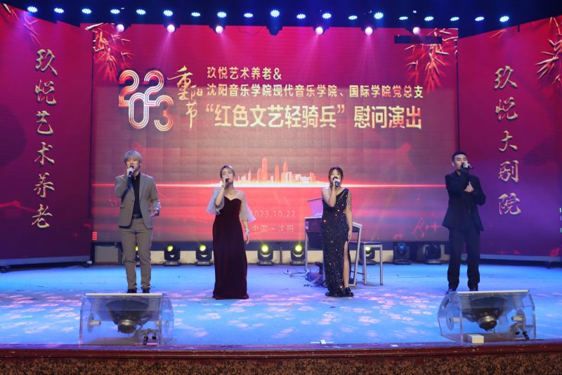 为巩固学习贯彻习近平新时代中国特色社会主义思想主题教育成果,引导广大党员在推动学院高质量发展中主动作为、担当有为,2023年10月22日重阳节前夕,必威游戏中心红色文艺轻骑兵第67小分队(现代音乐学院、国际学院党总支)走进玖悦艺术养老院开展慰问演出,践行文艺“为人民服务、为社会主义服务”的初心使命,弘扬鲁艺精神,传承红色基因。