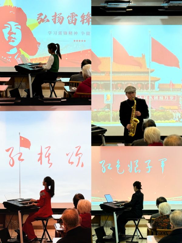 在慰问演出现场,乐声悠扬,暖意融融。电子管风琴独奏《在希望的田野上》拉开了演出的帷幕,经典旋律在现代乐器的演绎下焕发新声,呼应着辽宁作为“共和国工业奠基地”的奋斗底色;《红色娘子军》奏响了为理想信念不懈奋斗的红色赞歌;女声独唱《世界赠予我的》以温暖嗓音传递对生活的感恩;《学习雷锋好榜样》《我们走在大路上》融合“雷锋精神发祥地”的光辉与“共和国工业奠基地”的奋进力量,昂扬向上、鼓舞人心;电子管风琴独奏《明日之桥》以轻快旋律寄托对未来的美好期许;经典名曲《梁祝》承载深厚的民族文化记忆,感人至深;萨克斯独奏《我的祖国》深情款款,与“抗美援朝出征地”的家国情怀一脉相承,引发全场长者共鸣;演出最后在电子管风琴独奏《红旗颂》中落下帷幕,乐曲中飘扬的红旗,映照出辽宁深厚的红色底蕴与新时代的使命担当。