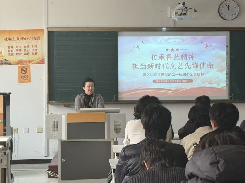 为深入学习贯彻党的二十届四中全会精神,引导青年学子传承鲁艺精神、担当时代使命,11月26日,现代音乐学院党总支书记郑晓丹,院长张媛分别为流行器乐系学生讲授思政课与形势政策课。