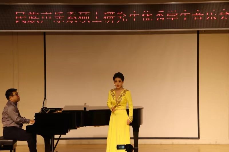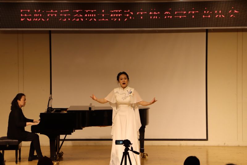 音乐会上,张雅薇同学演唱的《雷火中的笑容》以激昂的旋律展现了无畏的精神,贺琳琳同学演唱的《粉墨春秋》道出了戏曲人生的沧桑与辉煌,李文跃同学演唱的《山丹丹开花红艳艳》以其欢快的节奏传递出革命的热情与希望,《塔里木河》则描绘了壮丽的自然风光,勾起了人民对美好生活的向往,精湛的演唱技巧和震撼人心的舞台感染力将音乐会推向高潮。一首首旋律优美的歌曲,一个个感人肺腑的故事,不仅展示了民族声乐系硕士研究生的高水平的演唱技巧,也为全系师生带来了一次难忘的艺术之旅