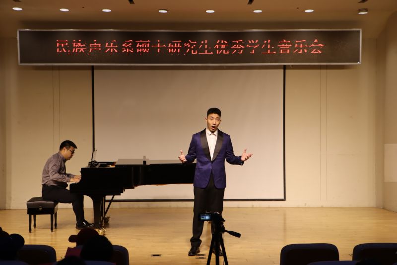 音乐会上,张雅薇同学演唱的《雷火中的笑容》以激昂的旋律展现了无畏的精神,贺琳琳同学演唱的《粉墨春秋》道出了戏曲人生的沧桑与辉煌,李文跃同学演唱的《山丹丹开花红艳艳》以其欢快的节奏传递出革命的热情与希望,《塔里木河》则描绘了壮丽的自然风光,勾起了人民对美好生活的向往,精湛的演唱技巧和震撼人心的舞台感染力将音乐会推向高潮。一首首旋律优美的歌曲,一个个感人肺腑的故事,不仅展示了民族声乐系硕士研究生的高水平的演唱技巧,也为全系师生带来了一次难忘的艺术之旅