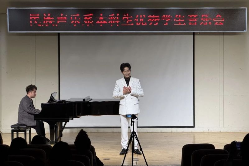 演唱曲目丰富多元,尽显民族声乐的独特魅力。既有洋溢着浓郁地域风情的民歌,如那悠扬婉转的江南小调,带着水乡的温婉与柔情;也有豪迈奔放的西北民歌,仿佛将听众带到了广袤无垠的黄土高原,感受着那片土地上的粗犷与热情。古诗词艺术歌曲则宛如一幅幅古朴典雅的画卷,学生们用细腻的嗓音将诗词中的意境与情感娓娓道来,让人沉醉于古典文化的深邃韵味之中。歌剧选段部分,学生们化身剧中角色,以跌宕起伏的唱腔和生动传神的表演,将歌剧中的爱恨情仇展现得淋漓尽致,引得现场观众沉浸其中,时而屏息凝神,时而掌声雷动。而独具时代特色的创作歌曲,更是展现了学生们对当下生活的敏锐感知和对民族声乐艺术创新的积极探索,旋律中跳动着青春的脉搏,歌词里蕴含着对未来的美好憧憬。
