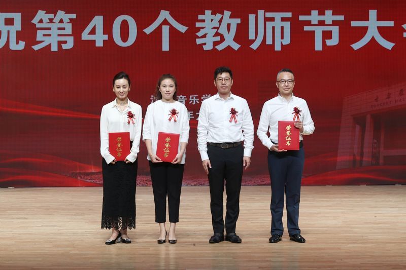 表彰大会由戏剧影视学院教师朱慧、学生郑颜卓主持。气氛温馨庄重、气氛热烈。音乐附中学生合唱的《和你在一起》,旋律优美、情感真挚,拉开了大会帷幕。戏剧影视学院学生朗诵的《九月的问候》,民族声乐系学生演唱的歌曲《长大后我就成了你》,主题鲜明、内涵丰富、情真意切,表达了对老师们的深深敬意与爱戴。戏剧影视学院教师苏颖堃、单丹朗诵的《血脉》,带领师生重温鲁艺走过的烽火岁月,感受鲁艺前辈从延安走来的坚定与执着,传递出新时代艺术教育工作者和鲁艺传人勇担“为党育人,为国育才”“为时代放歌,为人民起舞”职责使命的家国情怀,为推动文化繁荣、建设文化强国、建设中华民族现代文明贡献艺术力量的信心和决心。
