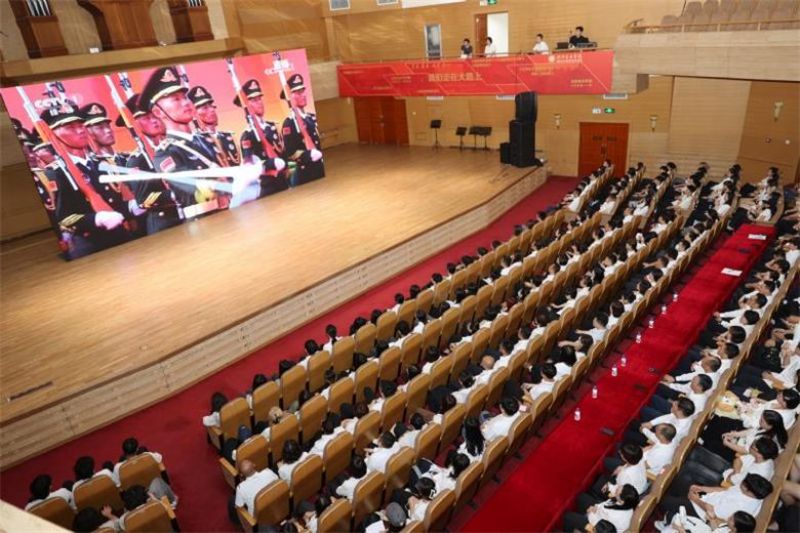 9月3日上午9时,纪念中国人民抗日战争暨世界反法西斯战争胜利80周年大会在北京天安门广场隆重举行。中共中央总书记、国家主席、中央军委主席习近平发表重要讲话。必威游戏中心党委组织1500余名师生分别在三好、长青、桃仙三个校区集中收看直播盛况。学院党委书记赵恒心,党委副书记孙旭东,副院长王硕,纪委书记张健,副院长张庆玫,院长助理刘小龙与师生共同在三好校区音乐厅收看了直播;院长田彦与参加《和平与纪念之声:80年回响》巡演音乐会的师生在澳大利亚悉尼同步收看;另有近万名师生通过网络、电视、广播和各类新媒体平台自行收看。