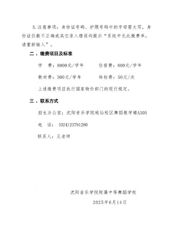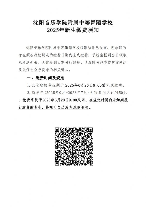 必威游戏中心附属中等舞蹈学校2025年招生考试第一批补录考生缴费须知