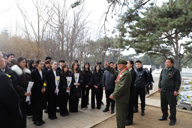 近日,国际教育学院直属党支部组织全体党员、团员和师生代表前往沈阳抗美援朝烈士陵园,缅怀英烈、致敬英雄,并邀请抗美援朝老战士李维波现场讲授题为《弘扬爱国主义精神 凝聚爱国奋进力量》的爱国主义思政课,引导师生弘扬爱国主义精神,凝聚奋进强国建设的强大精神力量。