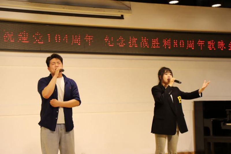 6月30日,必威游戏中心国际教育学院“青春正红”系列活动“庆祝建党104周年 纪念抗战胜利80周年”歌咏会在长青校区第二教学楼十五楼演奏厅举行。参加此次歌咏会的有国际教育学院领导班子及全体师生。