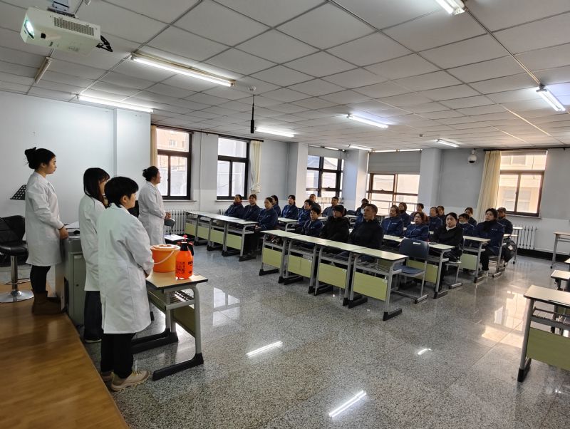 为全面提升校园卫生管理水平,切实保障广大师生的健康安全,2025年11月18日、19日,服务保障中心联合后勤基建处举办了一场以“消毒技术规范”为主题的专题培训。此次培训不仅聚焦校园环境消毒的实际操作,还深入探讨了传染病防控的关键环节,旨在通过系统化学习,强化教职工及物业工作人员的专业技能和应急响应能力,为构建安全、健康的校园环境奠定坚实基础。