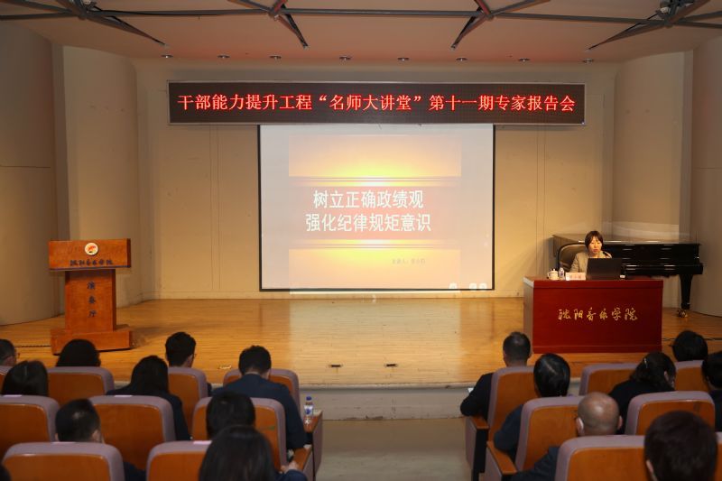 4月24日,学院党委举办干部能力提升工程第十一期“名师大讲堂”专家报告会,深入学习贯彻习近平总书记关于加强党的纪律建设的重要论述,进一步推进学院党纪学习教育和以案促改工作走深走实,教育引导党员干部不断强化规矩意识,坚守纪律底线,树立正确政绩观。中共辽宁省委党校(辽宁行政学院、辽宁省社会主义学院)民族宗教教研部副主任张小莉教授应邀作专题辅导报告。学院领导、处科级领导干部、党支部书记、专职组织员和专职党务工作人员等近300人参加报告会。报告会由党委副书记孙旭东主持。