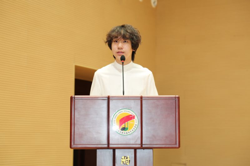 获2024中国音乐小金钟钢琴演奏新秀奖、高二年级张瀚朗作为老生代表发言,与学弟学妹们分享自己在附中的成长经历与感悟。他的发言不仅点燃了新生对知识的渴望之火和奋斗之志,更激发了他们在未来的学习生涯中不断挑战自我、超越极限的勇气。
