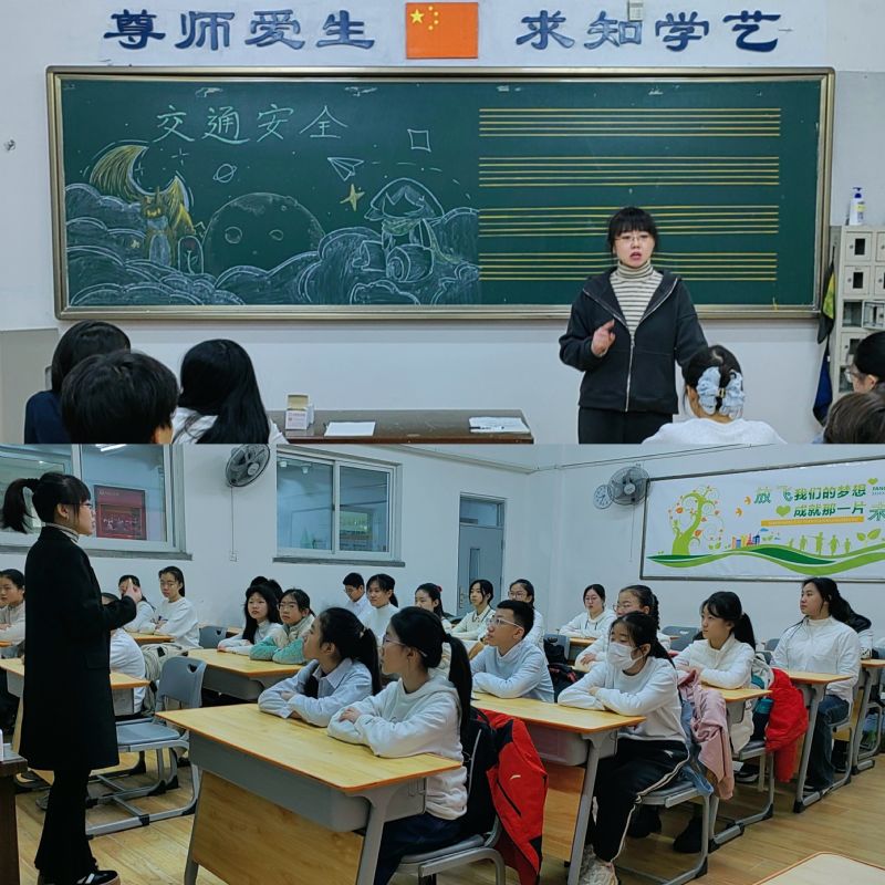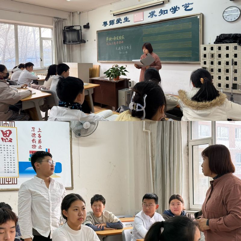 此次班会活动,各班班主任做了精心准备。初一二班班主任项培华通过播放一系列真实而震撼的交通事故视频,深刻揭示违规骑行、未成年人驾驶车辆等行为的潜在危险及其严重后果;高一三班班主任张效铭以角色扮演的方式,模拟各种交通场景,让同学们亲身体验在不同情况下如何正确做出交通行为选择; 初二二班班主任白肖肖深入浅出地讲解交通安全知识,指导学生们识别各种交通标志,深入分析交通事故发生的原因,给予同学们实用的交通安全建议和自我保护措施;高二五班班主任赵丽丽设置了知识问答竞赛环节,让同学们在竞答中进一步巩固所学的交通安全知识;初三一班班主任韩辉组织学生进行交流研讨,分享自己曾经目睹或经历的交通惊险瞬间,让同学们认识到遵守交通规则是对自己和他人生命的尊重与珍视。