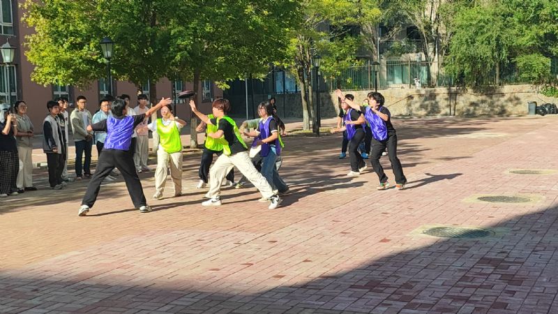赛场上,同学们的协作精神展现得淋漓尽致——初中部瞄准飞盘九宫格时的专注认真、命中时的欢呼雀跃;高中部奔跑时的追风身影、传接时的精准默契、防守时的坚定姿态,每一个瞬间都充满青春力量。即便面临比分落后或体力透支,队员们依旧咬牙坚持:摔倒后立刻起身的倔强、队友间互相鼓劲的呐喊、暂停时共同复盘的专注,构成了赛场最动人的风景。其中,高二四班与高一二班的总决赛尤为精彩,双方凭借精湛的盘技与无缝的配合展开巅峰对决,现场欢呼声、加油声此起彼伏,将气氛推向高潮。