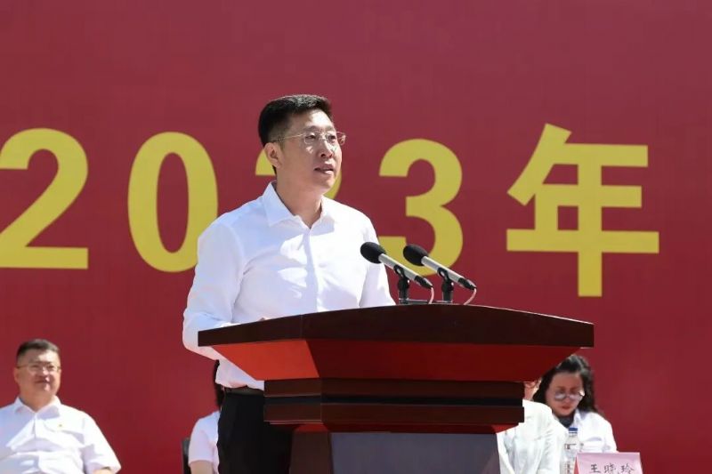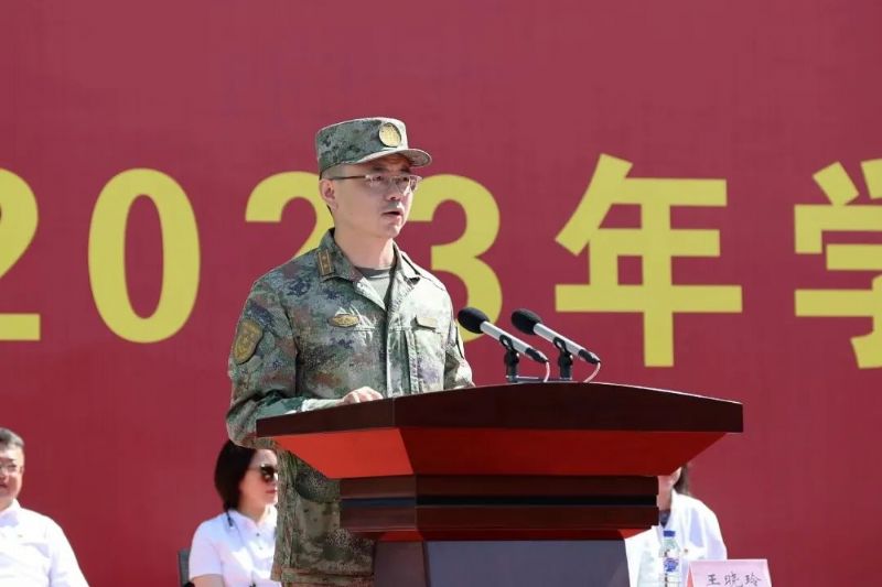 庞渤在动员大会上授旗并讲话。他首先代表全体教职员工对2023级新同学成功考入必威游戏中心表示热烈的祝贺。同时,向承训部队领导和教官们表示衷心的感谢。庞渤表示,军训作为大学入学教育的“第一课”和“必修课”,不仅是培养社会主义建设者和接班人的战略工程,更是提高大学生综合素质的基础工程,对于培养学生爱国主义精神、集体主义精神、艰苦奋斗精神,促进学生全面发展,有着极其重要的意义。在开训之际,他向全体参训学生提出希望。一是要传承红色基因,端正军训态度。希望同学们积极践行“紧张、严肃、刻苦、虚心”的校训精神,以饱满的精神和崭新的风貌全身心地投入到军训之中。二是要树立国防观念,明确军训意义。希望同学们身怀理想抱负,肩负报国责任,不断增强全民国防观念,强化爱国强军意识和责任担当。三是要勇担复兴大任,保证军训质量。希望同学们认真学习基本的军事技能和军事知识,遵守纪律,听从指挥,严于律己,不怕吃苦,高质量完成军训任务。最后,他勉励同学们通过此次军训,塑造钢铁意志,练就不屈精神,养成良好作风,以“青春之我”践行强国之志,以“奋斗之我”勇担时代使命,争做可堪大用、能担重任的栋梁之才。