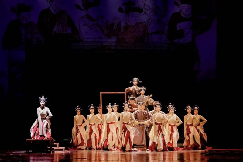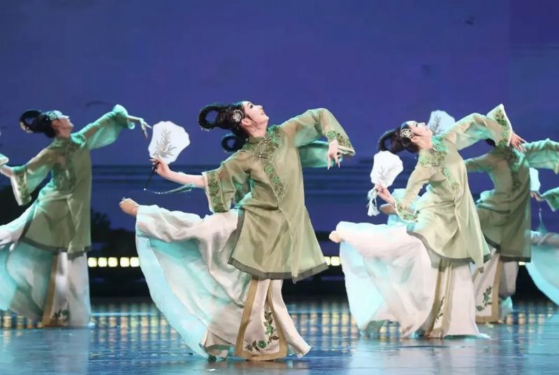 以清代《执扇就座仕女图》为范本,将东方美学融入行云流水般的舞姿之中,表现了清代仕女在画中的意境:她们手执团扇、三五成群,“轻罗小扇扑流萤”“云卷云舒、踏歌起舞”。细腻勾勒清代女性的温婉柔美,传递和美团圆的美好寓意,投射出中国传统文化的民族精神与内涵。该作品荣获荷花奖剧目金奖、桃李杯全国优秀剧目奖,以创新形式让文物实现“活态”传承。