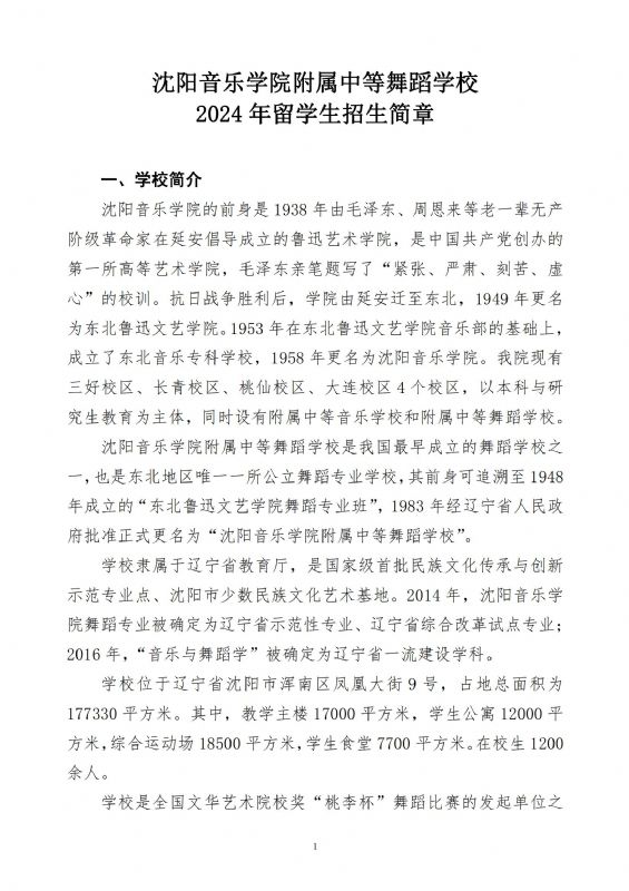 必威游戏中心附属中等舞蹈学校2024年留学生招生简章