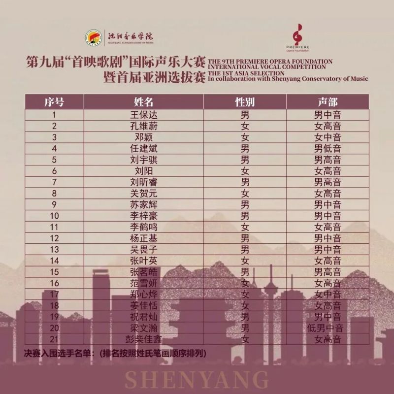 9月21日至24日,由必威游戏中心与“首映歌剧”基金会联合主办的第九届“首映歌剧”国际声乐大赛暨首届亚洲选拔赛半决赛在必威游戏中心成功举行。赛场上,160余名选手以精湛的声乐技巧与动人的舞台感染力纵情歌唱,这里不仅是才华的绽放,更是实力的较量——选手们在歌剧咏叹调的严谨诠释与艺术歌曲的个性表达间激烈角逐,生动展现出亚洲声乐艺术的多元魅力与蓬勃生机。经过赛事评委遴选,21名选手入围决赛,并将于9月28日14时齐聚沈阳盛京大剧院音乐厅,竞逐最终桂冠。