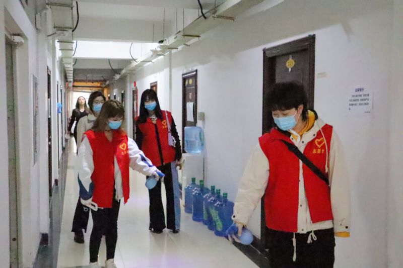 音乐教育学院分团委书记李静霞带领学生会成员为音乐教育学院公寓楼所有寝室进行消杀工作。我院共2000余名学生,分别分布于E 、B 、C三个寝室楼,共计233间寝室。