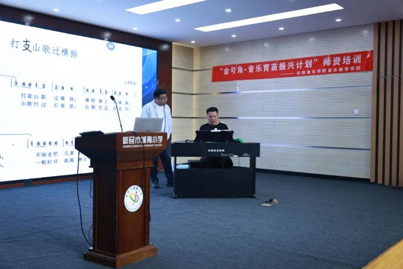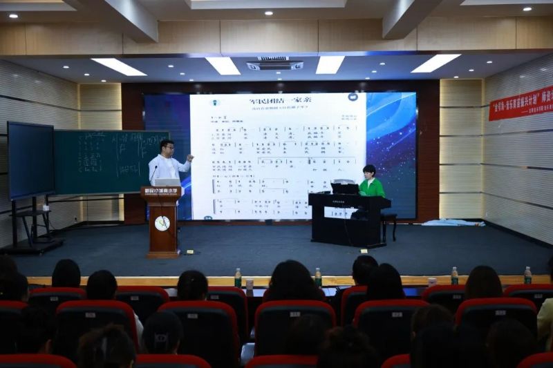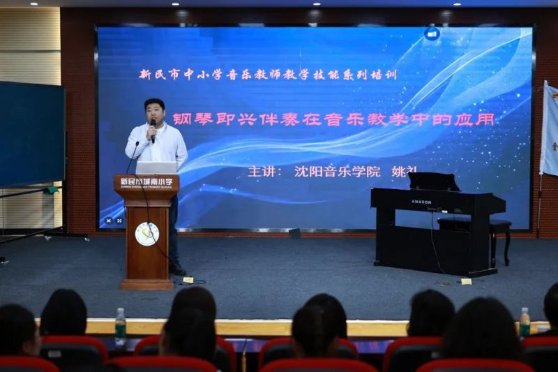 “金号角・音乐育苗振兴计划”师资培训团的授课教师姚礼前往新民市教师进修学校,以“钢琴即兴伴奏在教学中的应用”为主题开展专题讲座。新民市教师进修学校负责人、中小学音乐教研员和音乐教师等60余人参加此次培训。结合基础音乐教学实际,以《中国》《送别》等中小学音乐教材经典曲目为例,姚礼现场演示即兴伴奏技巧在课堂中的创新应用,助力学生音乐素养提升,优化教师教学方法,增强校本课程实施效果。培训现场气氛热烈、互动踊跃,参训教师普遍反馈受益匪浅,达到了“学以致用、知行合一”的培训效果,为乡村音乐教育注入了创新动力。