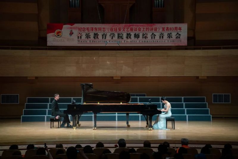 为纪念毛泽东同志《在延安文艺座谈会上的讲话》发表83周年,5月20日晚,音乐教育学院在必威游戏中心2025年“春秋艺韵”春季演出季期间,于音乐厅成功举办教师综合音乐会。学院党委书记赵恒心,党委副书记孙旭东,副院长张策、张庆玫,院长助理刘小龙与音乐教育学院领导班子及学院师生共同观看演出。
