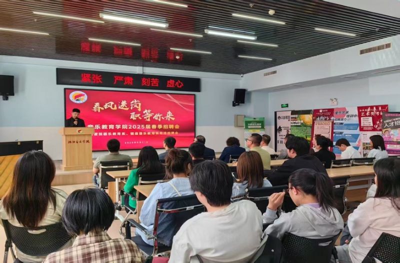 为推动我院毕业生高质量就业,音乐教育学院积极响应学院政策号召,于5月21日成功举办2025届毕业生春季校园招聘会暨管弦器乐教育系、键盘器乐教育系专场活动。音乐教育学院副院长孙宏娟,音乐教育学院学生管理科科长赵晓晨,键盘器乐教育系领导班子和管弦器乐教育系领导班子及辅导员参会,会议由管弦器乐教育系党支部书记兼辅导员郭飞主持。