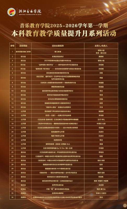 音乐教育学院2025-2026学年第一学期本科教育教学质量提升月系列活动安排