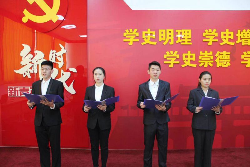 为表达自己的爱国之情,四名团员代表还精心准备了朗诵作品《党的光辉照我心》,朗诵诗句伴随着音乐,将我国的建党初期在小小红船上不惧困难的决心和近年来我国的发展富强娓娓道来,为团课学习奠定良好气氛。