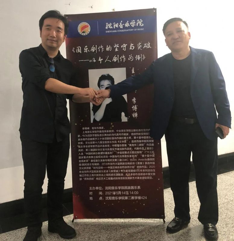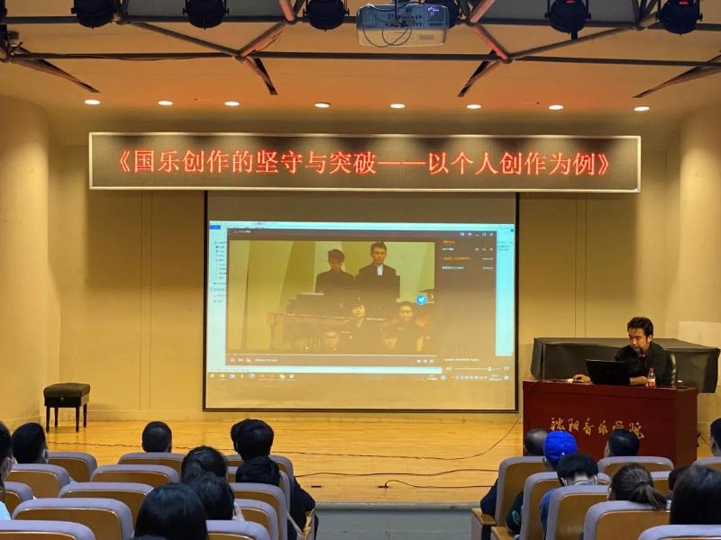 5月14日,李博禅在第二教学楼424学术报告厅举办《国乐创作的坚守与突破-以个人创作为例》的学术讲座。党委副书记宋喜仁出席讲座。民族器乐系领导班子、部分师生聆听了讲座。